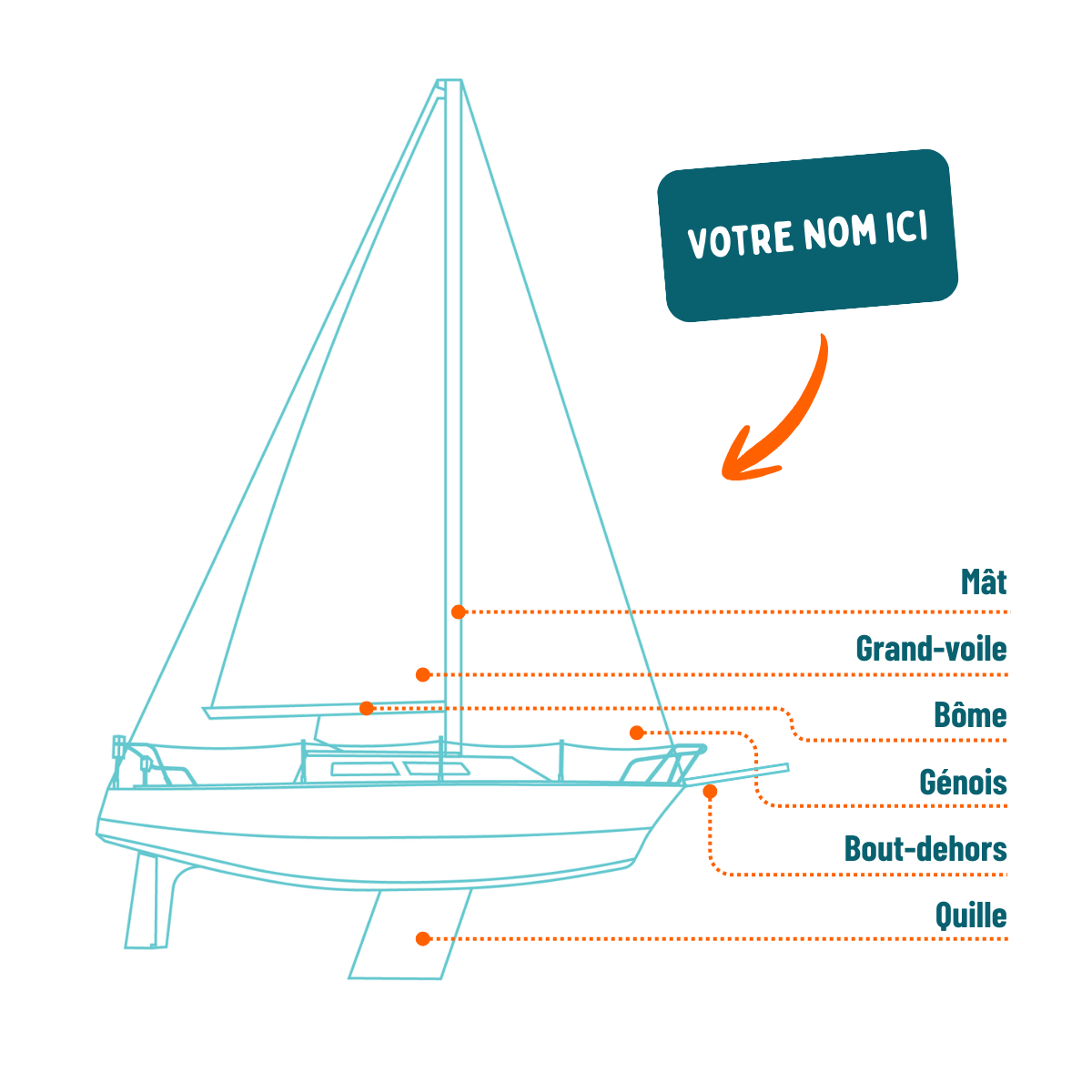 En échange d’une contribution financière, vous devenez plus qu’un simple équipier : vous faites réellement partie du bateau. Selon le montant choisi, nous baptiserons à votre nom un élément clé du voilier — voiles, bôme, mât, bout-dehors, etc (sticker ou peinture selon l’endroit).